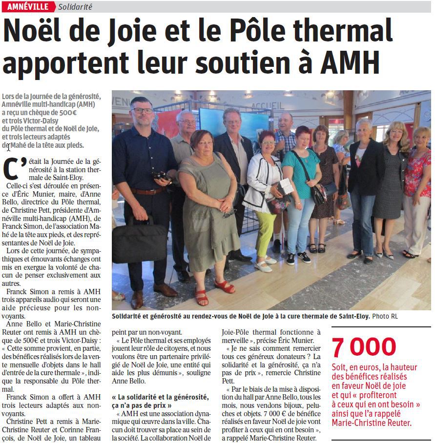 Le jeudi 31 mai 2018, nous avons offert plusieurs lecteurs DAISY (voir article ci-dessous) à l'association Amnéville Multi Handicap.